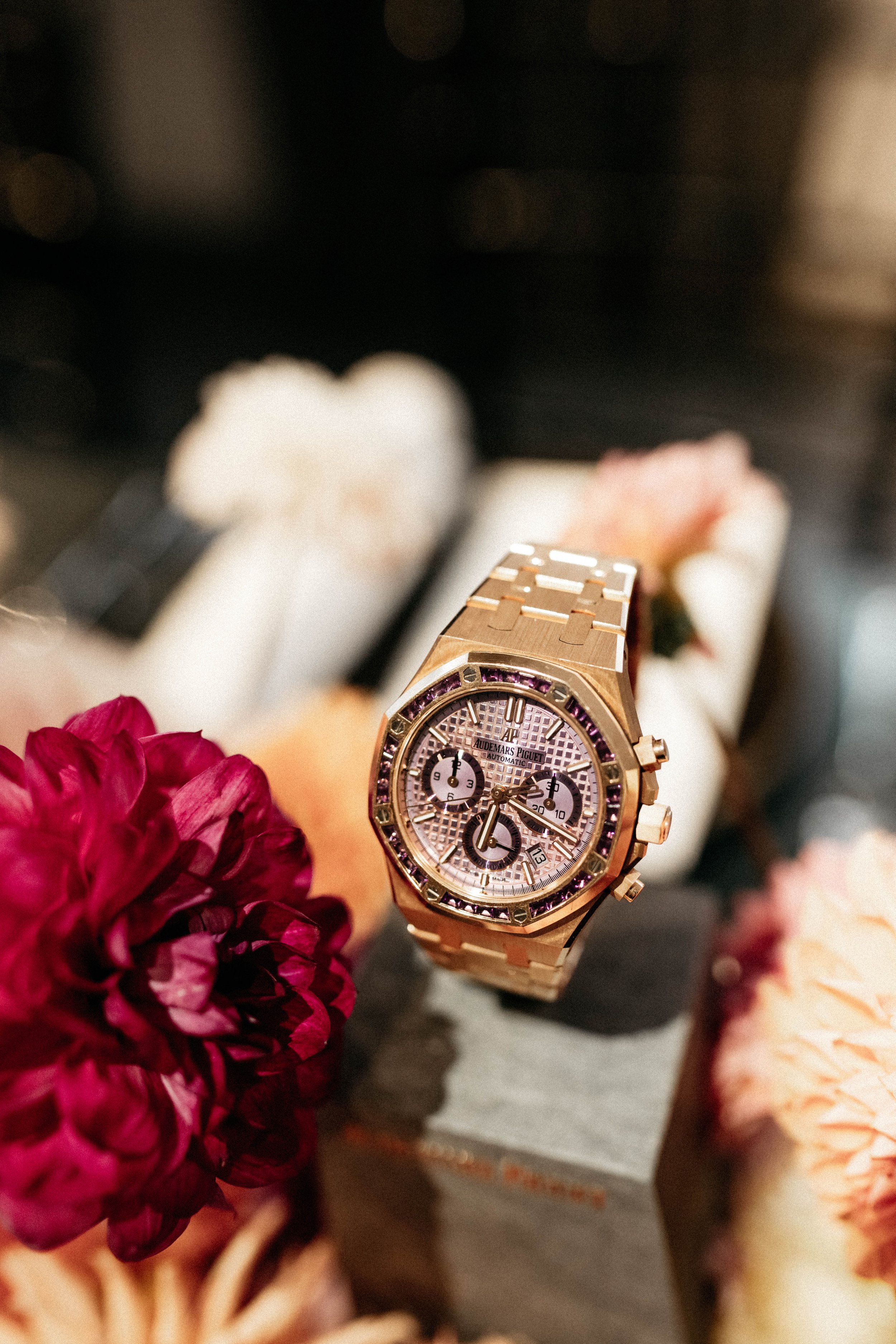 Depuis 2019, pour cette prestigieuse marque, emblème de la haute horlogerie, je suis invitée à concevoir et animer des formations et des workshops autour du monde. J’ai eu le privilège d’animer plusieurs ateliers à destination des CEO des différents marchés, d’influenceurs, de personnalités publiques, de clients VIP et de membres de familles royales. En 2021, j’ai eu l’honneur d’être ambassadrice d’un modèle Royal Oak serti d’Améthystes. À cette occasion, j’ai accompagné les équipes sur le terrain, au cœur des lieux d’extraction, donnant naissance à une campagne réalisée en collaboration avec Madame Figaro. J’ai également sourcé des pierres naturelles pour des commandes sur mesure.